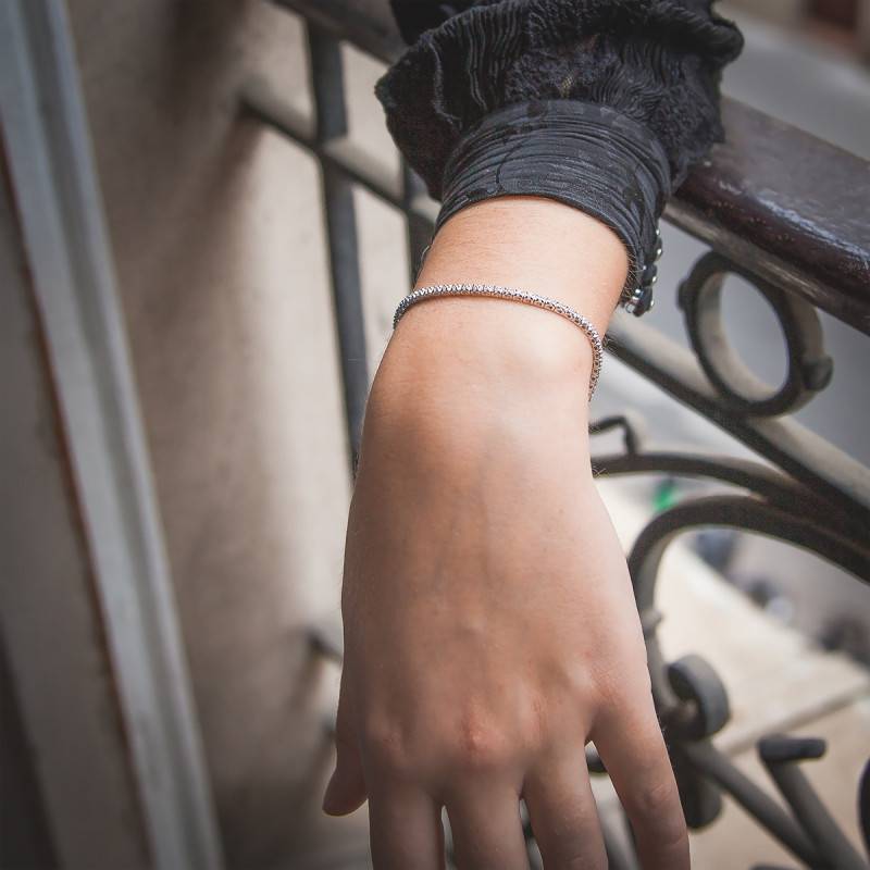 Laissez-vous séduire par ce sublime Bracelet Rivière en Or Blanc et ses 66 diamants. Ce bracelet vous charmera par son esthétique élégante et intemporelle qui habillera votre poignet en toute occasion ! Il a été réalisé en or blanc pour scintiller de mille feux à votre poignet. Il dispose d'une longueur de 20 cm pour une largeur de 2 mm. Les 66 diamants ont un poids total de 1 carat. Pour vous offrir une sécurité au porté, les diamants ont été serti clos. Ce bijou possède un fermoir charnière avec cliquet de sécurité vous assurera un maintien parfait du bracelet à votre poignet.