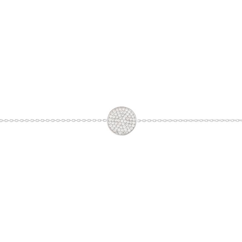 Le Bracelet Rond en Argent 925 & Zircons allie finesse et éclat. Réalisé en Argent massif 925/1000, il se distingue par son motif rond pavé de 61 oxydes de zirconium blancs à la taille brillante, reflétant la lumière avec élégance. Long de 18 cm, ce bijou léger de 2,30 g se ferme avec un fermoir mousqueton, garantissant sécurité et confort. Sa finition polie et brillante ajoute une touche lumineuse à votre poignet.