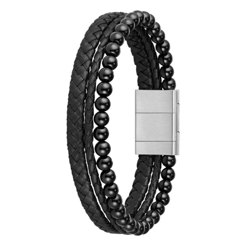 Bracelet Sphere Mixed en Cuir et Acier & Black Onyx, Longueur de 17,50 cm à 19 cm - 1580786