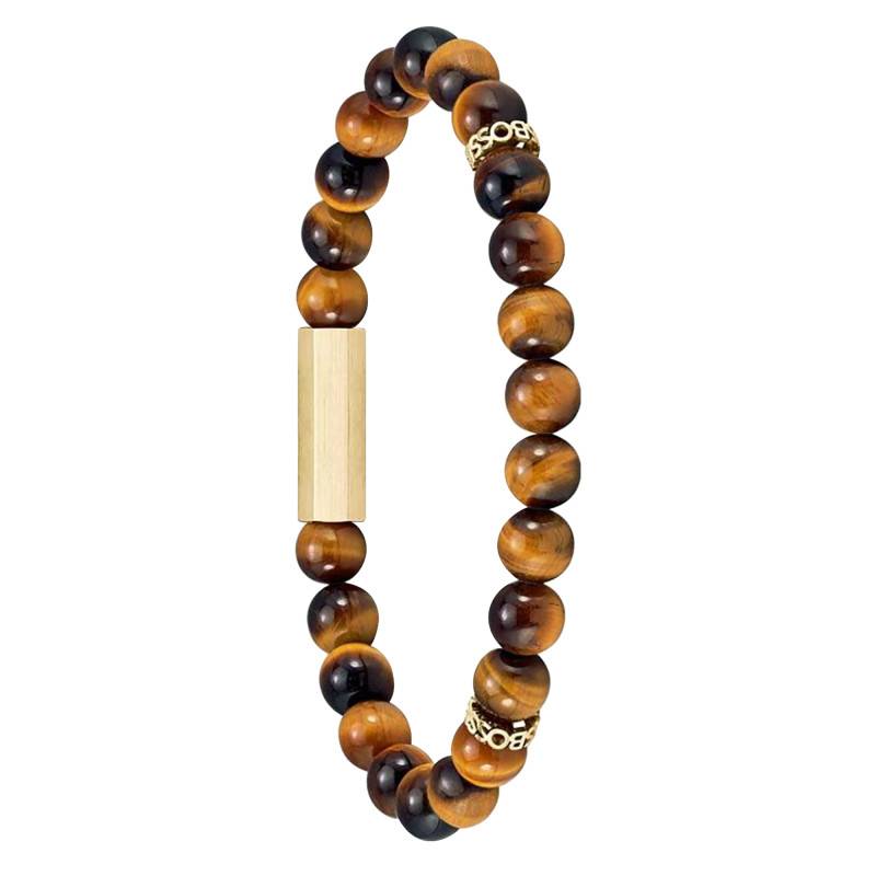 Découvrez ce magnifique bracelet provenant de la collection Sphere Stones. Il se compose d'un fermoir magnétique en acier inoxydable doré portant la signature de la marque. Ce bijou pour hommes se distingue par ses perles en œil de tigre, une pierre puissante qui agit sur plusieurs chakras. Le poids de ce bracelet est de 24,40 grammes et sa longueur est de 19 cm. Vous pourrez le porter avec plusieurs types de tenues selon vos goûts.