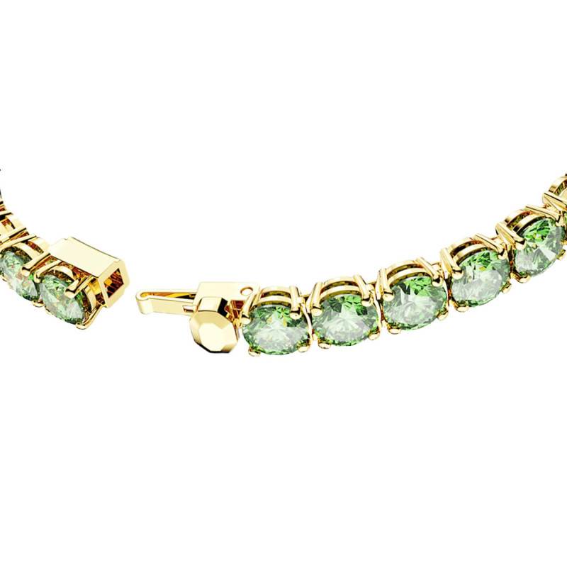 Issu de la collection Matrix, ce bracelet tennis sobre et élégant est constitué d'un ensemble de cristaux de 0,5 cm d'une majestueuse couleur verte mêlant modernité et raffinement. Conçu à partir d'un métal doré, ce bracelet se fixera avec charme autour de votre poignet grâce à un fermoir à clip. Il est réalisé avec une attention méticuleuse qui ne passera pas inaperçue. Il se décline en plusieurs tailles afin de s'ajuster parfaitement à votre poignet :