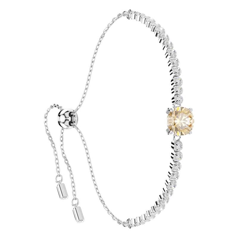 Swarovski vous propose ce beau bracelet Matrix Tennis qui allie élégance et modernité. Il est élaboré en métal rhodié de couleur argentée et brille grâce à une finition polie qui le rend éclatant. Celui-ci associe plusieurs cristaux blancs sertis à griffes qui leur assurent une sécurité optimale. Sa beauté est accentuée par un cristal de couleur champagne et de taille ronde. Ce bracelet a une longueur de 24 cm ajustable au moyen de sa boule coulissante et son motif affiche une taille de 0,4 x 0,6 cm.