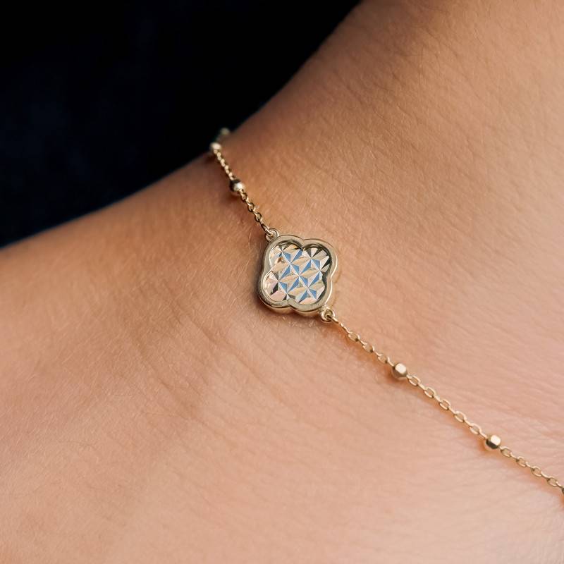 Le Bracelet Trèfle Scintillant en Or Jaune 375 est bien plus qu'un simple bijou; c'est une déclaration de raffinement et de chance. En or jaune 375/1000, ce bracelet brille avec une élégance polie et brillante, révélant la beauté pure de sa matière. Mesurant de 18 cm à 19 cm en longueur, il s'ajuste parfaitement à votre poignet grâce à son fermoir anneau à ressort. Le trèfle délicatement façonné de 9 mm de largeur et hauteur est une évocation poétique de la nature. Avec un poids total de 1,10 g, ce bracelet vous enveloppe de grâce sans alourdir votre geste.