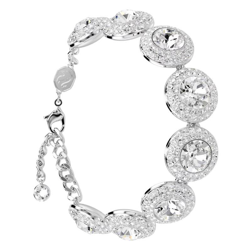 Le Bracelet Una Angelic transcende le temps avec ses harmonies de Métal Rhodié et de Cristaux Blancs. Chaque maillon émerge tel un éclat de lumière lunaire. Le métal plaqué rhodium, avec sa finition polie et brillante, exalte la pureté des Cristaux de Swarovski en un ballet éblouissant de reflets. Ce bijou se ferme avec un fermoir mousqueton, épousant le poignet avec souplesse et sécurité. Sa fabrication exquise est garantie 2 ans, promesse d'une beauté éternelle.