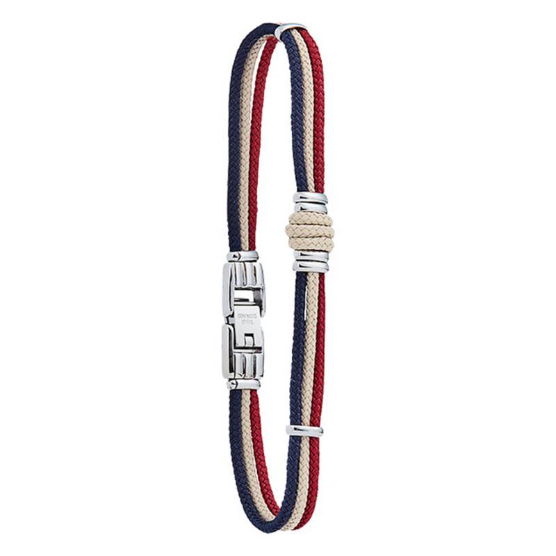 Optez pour ce fabuleux bracelet FZ 180 H de la collection Whitehaven. Très attirant, cette créations aux couleurs tricolore rappelant le drapeau français, fait 21 cm de long . Elle se posera sur votre poignet avec charme et assurance. Pour plus de confort et pour pérenniser le design du bracelet, les cordes sont maintenues entre elles par des anneaux gris en acier. Ce ravissant bijou de 0,7 cm de largeur dispose d'un petit fermoir en acier avec un cliquet qui vous permettra de manier ce dernier à votre aise.