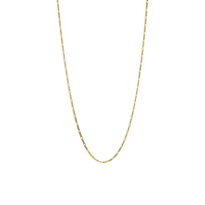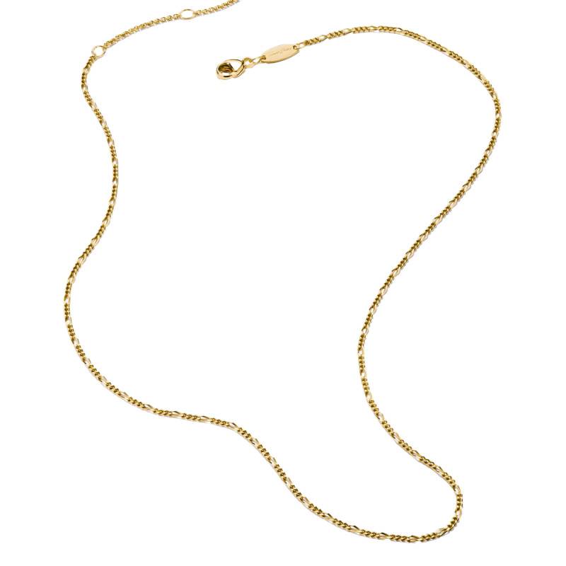 Laissez-vous enchanter par la Chaîne Figaro en Argent 925 Recyclé Plaqué Or Jaune 750. Avec sa longueur ajustable de 40 cm à 45 cm, elle s'harmonise avec l'âme de son porteur, correspondant aux désirs tant de la femme que de l'homme. Sa matière noble, faite en argent massif 925/1000 et sublimée par un plaqué or 750/1000 (18K), déploie un éclat polie et brillant incomparable. Ce bijou, d'une légèreté de 2,10 g, se distingue par la finesse de sa maille figaro, assurée par un fermoir mousqueton fiable.