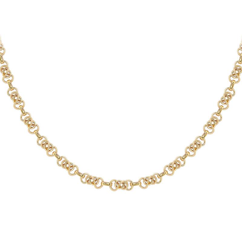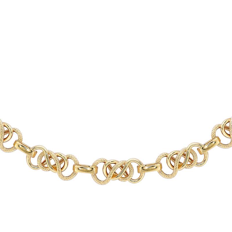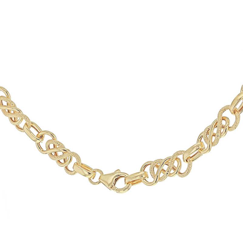Cette fabuleuse chaîne en maille celtique se pare d'un design délicat laissant entrevoir des maillons polis et texturés. Elle embellira à coup sûr vos différents styles vestimentaires de manière raffinée. Ce bijou est fabriqué avec de l'or jaune 375/1000 (9K) et arbore une finition polie pour vous permettre de le conserver durant de nombreuses années. Il dispose d'une largeur de 7,50 mm, d'une longueur de 51 cm et d'un poids d'or moyen de 9 grammes. Ses maillons raffinés sont formés par un double infini accordant à l'ensemble un esprit plus symbolique. Notez que cette chaîne dorée se referme facilement grâce à un fermoir mousqueton.