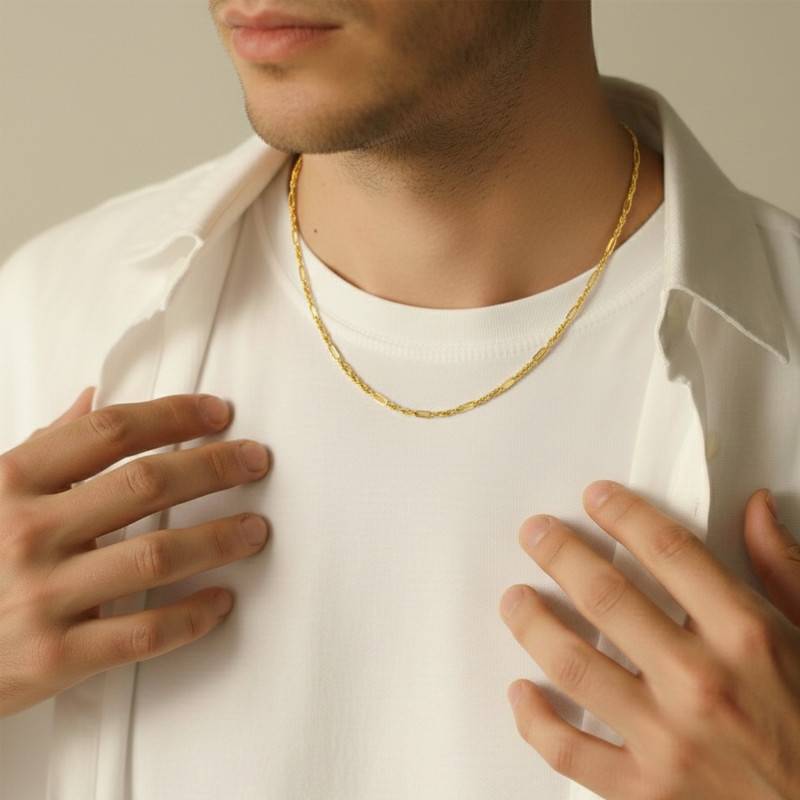 Parfait pour une touche d'élégance, cette chaîne est confectionnée en or jaune 375/1000 (9K) et mesure 46 cm de longueur. Ce bijou est une véritable œuvre d'art qui se distingue par sa teinte dorée et sa finition polie donnant cet aspect brillant. Il révèle une maille figaro creuse de 1,40 mm de largeur avec des liens torsadés au fini diamanté combinés à des maillons longs. Cette chaîne se termine par un fermoir mousqueton simple d'utilisation et pèse au total 3,20 grammes.
