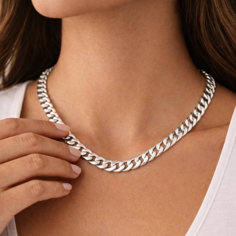 La chaîne Maille Gourmette se déploie comme une cascade de lumière sur la peau. Forgée dans un argent 925/1000, elle arbore une éclatante finition polie et brillante. Disponible en plusieurs longueurs allant de 41 cm à 71 cm, et d'une largeur de 3,20 mm, elle pèse 11,70 g. Sa couleur grise subtile se marie parfaitement avec un fermoir anneau à ressort discret, alliant élégance et sécurité. Cette pièce est doté d'une garantie de 2 ans.