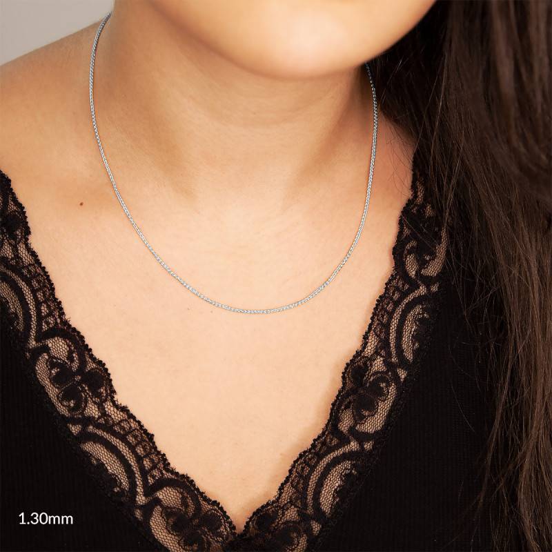 Chaîne en or blanc 750/1000 (18K), maille massive spiga, d'une longueur de 40 cm avec un anneau à ressort.