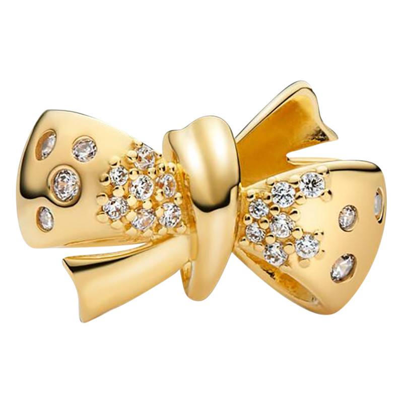 Le Charm Nœud Scintillant, en métal doré à l'or 585/1000 (14K), arbore un design classique en forme de nœud, sublimé par des pierres étincelantes qui captent la lumière à chaque mouvement. Ses dimensions, qui sont de 13,5 mm de hauteur, 14 mm de largeur et 8,2 mm de profondeur, en font une pièce idéale pour enrichir vos bracelets Pandora Moments. Ce charm évoque l'union et l'harmonie avec une touche de sophistication.