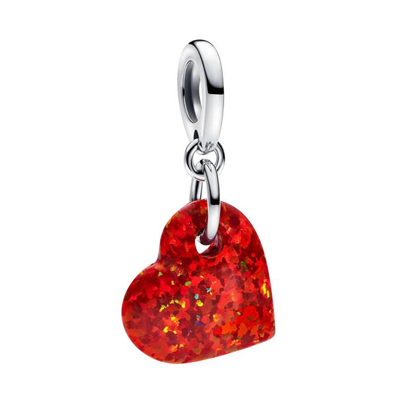 Le Charm Pendant Coeur Opalescent est une addition parfaite à votre collection. Fabriqué en argent massif 925/1000, ce charm arbore une magnifique opale rouge en forme de cœur, scintillant avec un spectre de couleurs fascinant. Suspendu en biais, le cœur apporte mouvement et éclat à chaque geste. Doté d'une épaisseur de 3,00 mm, d'une largeur de 11,80 mm et d'une hauteur de 11,60 mm, il se distingue par sa couleur gris et l'intensité de la pierre rouge. Ce charm s'intègre parfaitement à vos bracelets Pandora Moments, ajoutant une touche sentimentale et unique à vos créations.