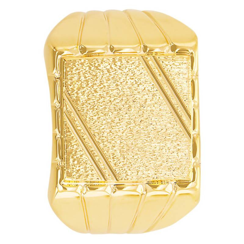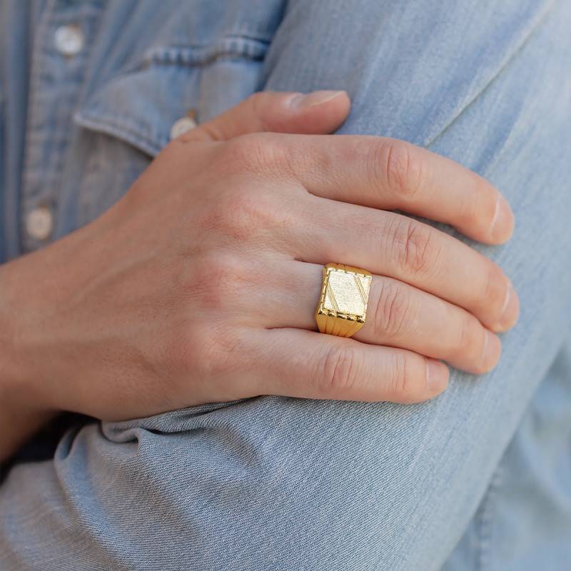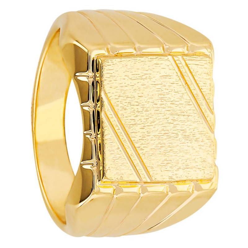 Cette magnifique chevalière a été réalisée en plaqué or 3 microns. Vous serez séduit par son élégant plateau carré de 12,50 x 12,50 mm pour une épaisseur de 2,50 mm. Le corps de la bague mesure 3 mm de large pour un poids moyen de 10,75 grammes pour un tour de doigt de 56. Pour la taille 68, le poids moyen est de 11,80 grammes. La finition brossée et rainurée vous sublimera et apportera une belle touche d'élégance à votre look.