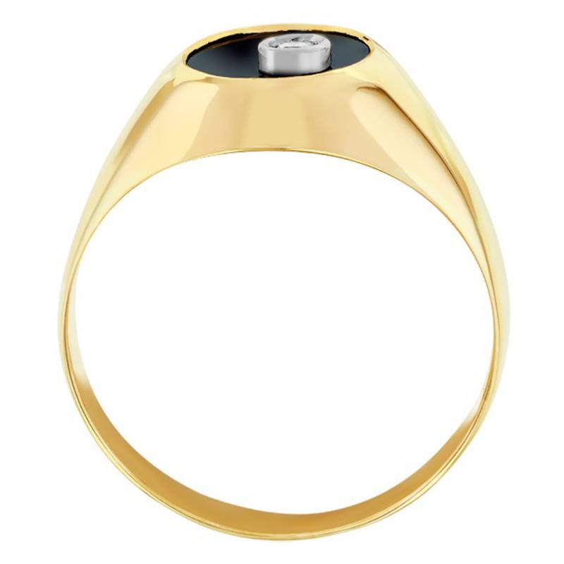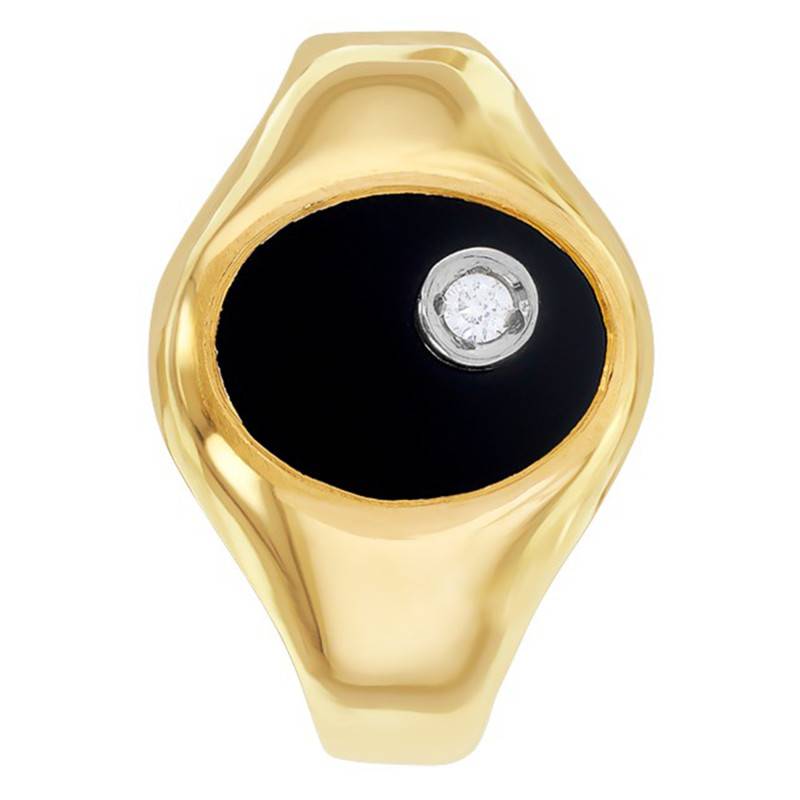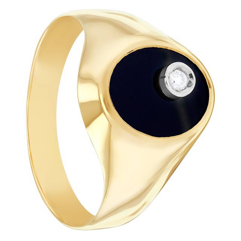 Cette chevalière en or jaune 750/1000 (18K) met en avant un plateau de 8 x 10 mm sur lequel repose la très délicate et fragile pierre onyx. La hauteur du plateau est quant à elle de 3 mm. Afin d'ajouter une touche d'éclat et d'élégance un diamant de 0,02 carat est sur le plateau. Le diamant est de couleur H et de pureté SI. Ce bijou ravira tout amateur de chevalière !