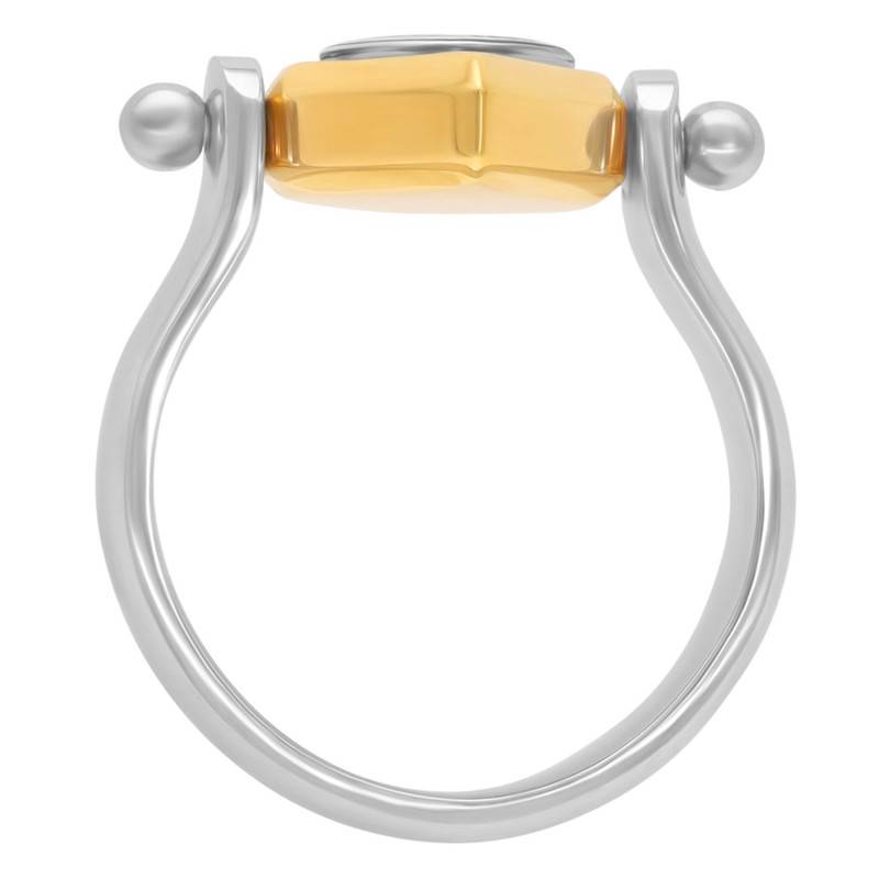Cette belle chevalière joue la carte de l'originalité et de l'élégance et ne vous laissera pas indifférent. Elle est composée d'un anneau épais fabriqué en acier chirurgical 100 % hypoallergénique qui mesure 5,8 mm de largeur pour une épaisseur de 1,9 mm. Son plateau en laiton doré en forme de losange est sublimé d'un œil en argent 925/1000 orné d'une lettre alphabétique. L'œil rotatif mesure 11,5 x 21,2 mm pour une épaisseur de 5,5 mm et l'ovale au centre mesure 10 x 8,5 mm. En toute élégance et sobriété, cette bague en acier résistante aux épreuves du temps s'accordera à toutes vos tenues.
