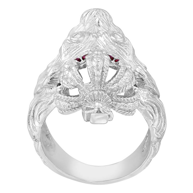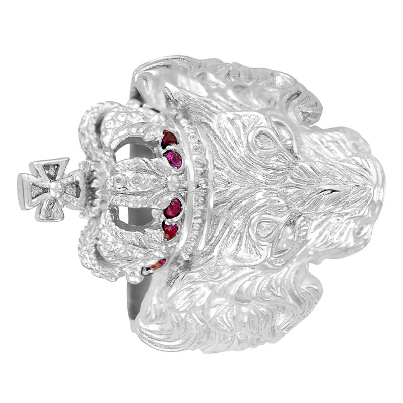 Cette magnifique chevalière est en or blanc 375/1000 (9K). Ce qui la rend unique, c'est son sublime motif en forme de tête de lion ornée d'une magnifique couronne aux détails saisissants ! Les dimensions du motif principal sont de 30 x 20 mm pour une épaisseur de 11 mm. Deux magnifiques rubis véritables viennent sublimer cette bague. Le poids moyen de ce ravissant bijou est de 18 grammes pour la 375/1000 (9K). Inspirée d'un univers "jungle", la marque Imperium ne vous laissera pas indifférent face à sa superbe collection.