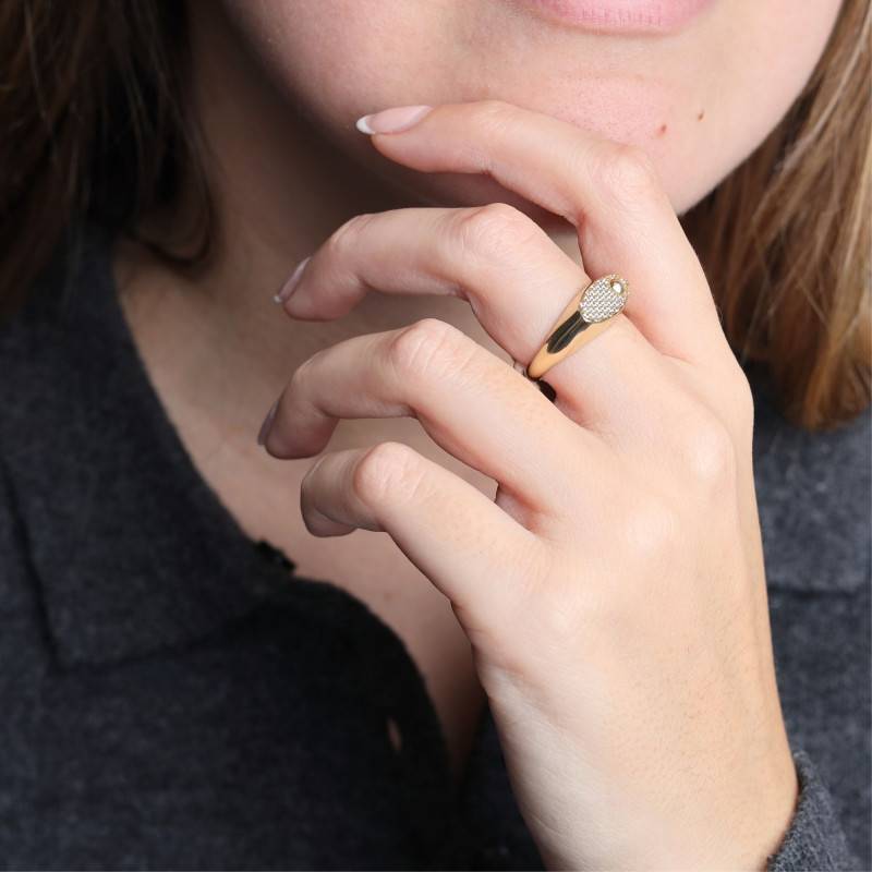 Découvrez la somptueuse Chevalière Ovale Oxydes de Zirconium en Or jaune 375. Une fusion sublime de l'Or Jaune 375/1000 (9K), cette pièce resplendit d'une finition polie et brillante. Arborant 39 oxydes de zirconium blancs, le plateau ovale de 15,15 x 6,50 mm capture et célèbre la lumière avec éclat. Chaque détail, de la largeur de 2,90 mm à l'épaisseur de 1,15 mm, est soigneusement conçu pour orner la main de sa grâce féminine. Garantie 2 ans, cette chevalière promet une durabilité à la hauteur de son charme.