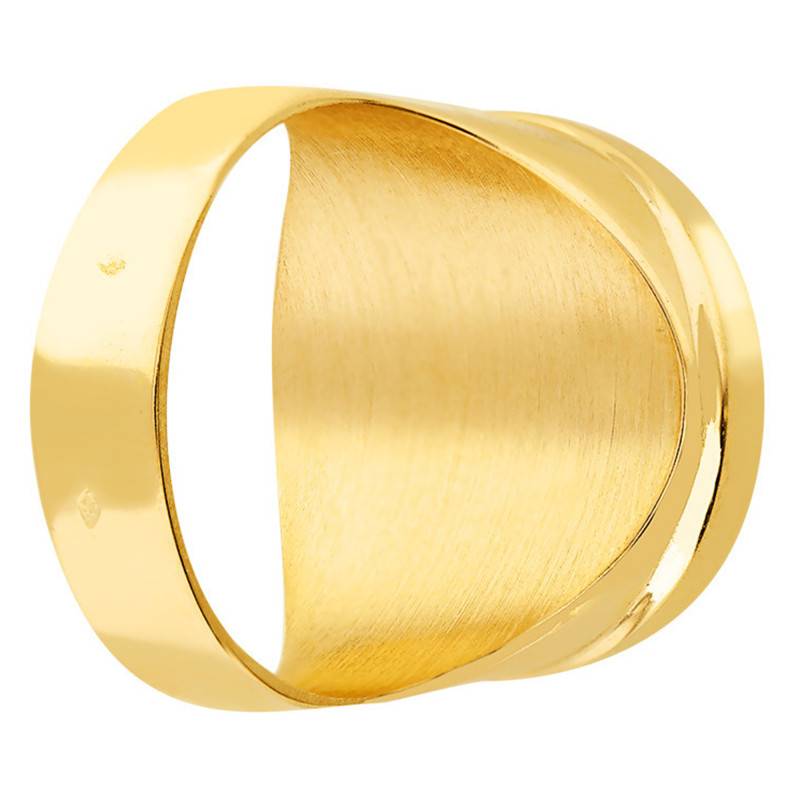La chevalière est bâtée, cela permet de fermer l'anneau autour de votre doigt. Ainsi, l'espace entre la tête de bague et le socle est évidé et un pont d'or vient fermer l'anneau.