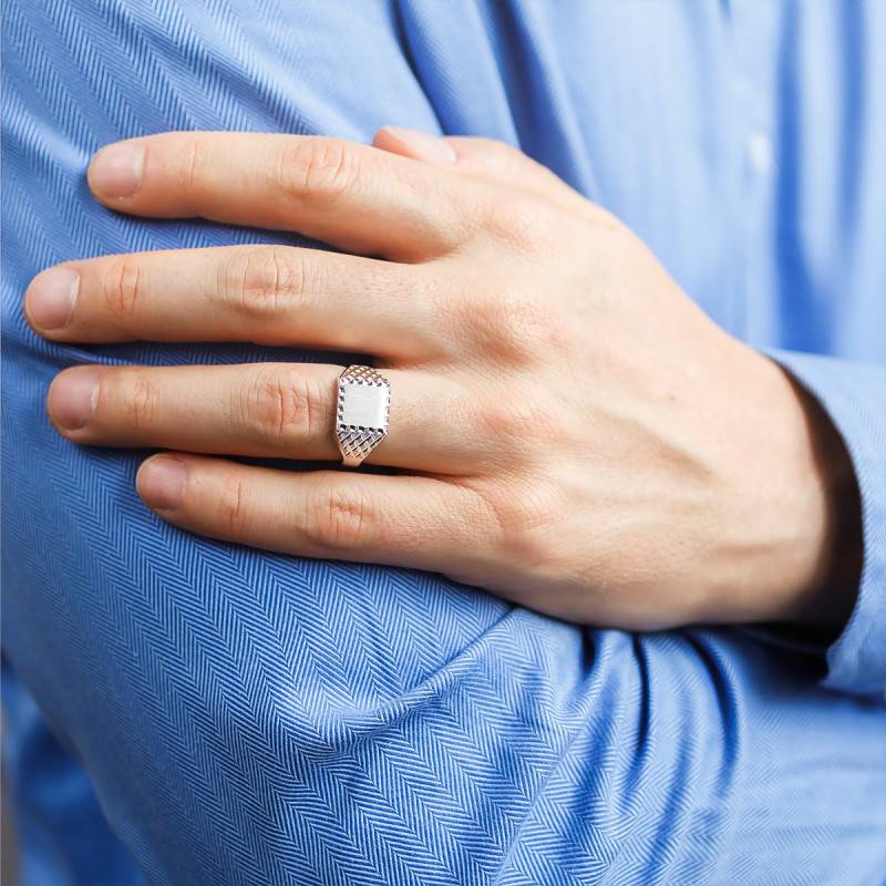 Imperium vous présente cette magnifique chevalière au plateau carré et aux bords facettés. Elle est en argent massif 925/1000.