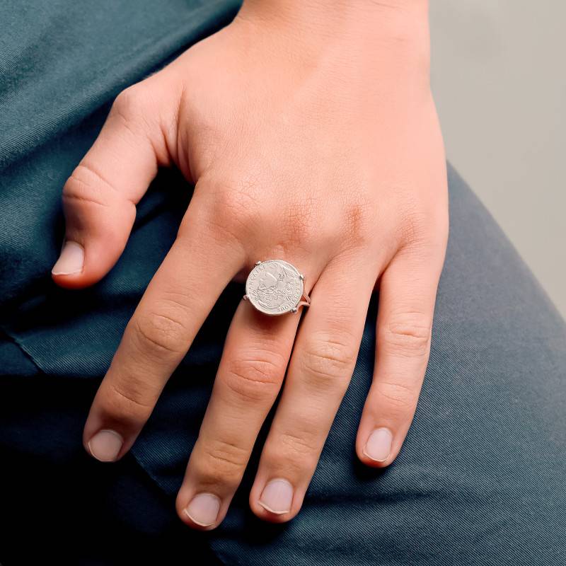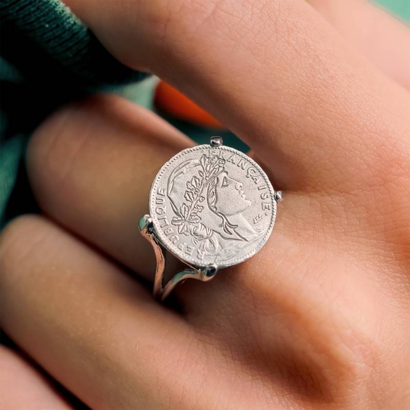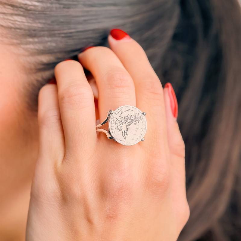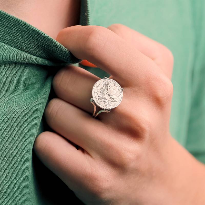 La Chevalière Réplique Marianne Pièce 10F Sertie Griffes en Argent 925 illustre l'alliance parfaite entre tradition et modernité. Conçue en argent massif 925/1000, elle se distingue par sa finition polie et brillante, mettant en valeur sa teinte grise raffinée. Avec un diamètre de 17 mm, une épaisseur de 0,50 mm et un poids de 5,00 g pour une tour de doigt de 60, cette chevalière offre un port à la fois confortable et équilibré. Son motif inspiré de la pièce Marianne rend hommage à l'histoire et au savoir-faire artisanal d'Imperium.