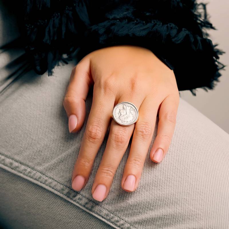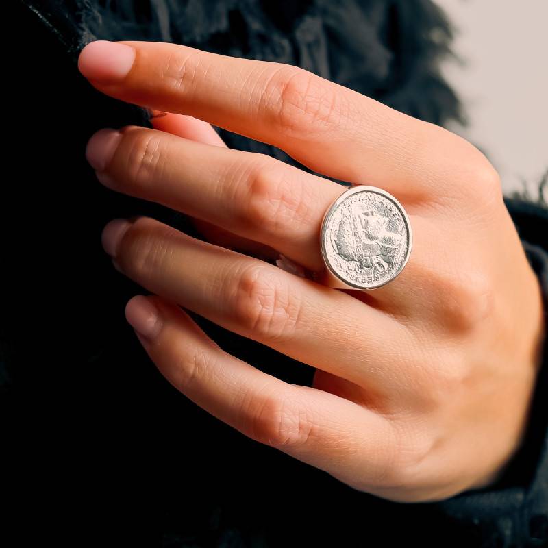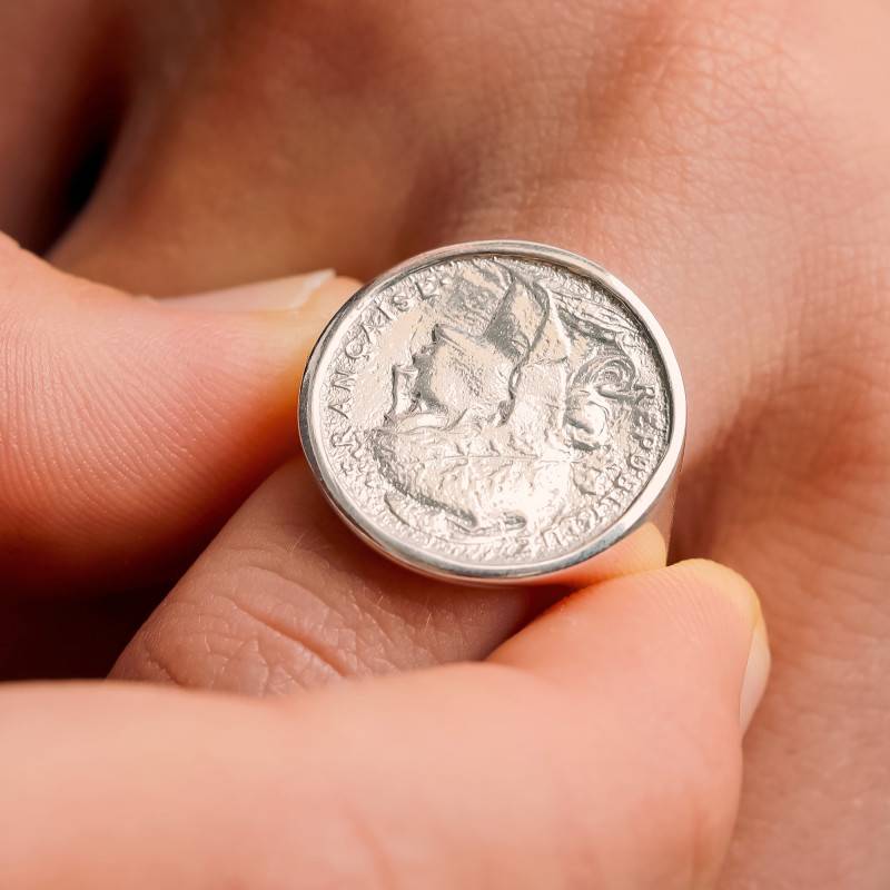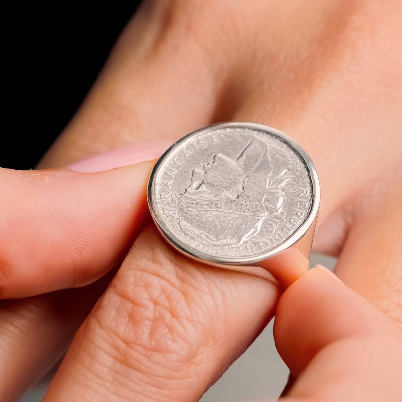 Découvrez la Chevalière Réplique Marianne Pièce 20F en Argent 925, un bijou empreint d'histoire et de raffinement. Réalisée en argent massif 925/1000, elle se distingue par sa finition polie et brillante qui reflète la lumière avec subtilité. D'un diamètre de 21 mm, d'une épaisseur de 0,90 mm et d'un poids d'environ 6,50 g, pour une taille 60, cette chevalière séduit par son équilibre parfait entre élégance et présence. Son motif de pièce, inspiré du patrimoine français, évoque la noblesse et le prestige d'une époque révolue. Adaptée aux femmes comme aux hommes, elle sublime chaque geste avec distinction.