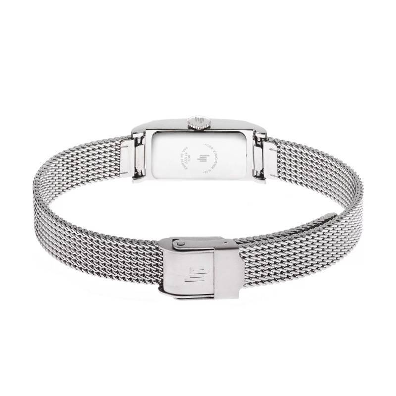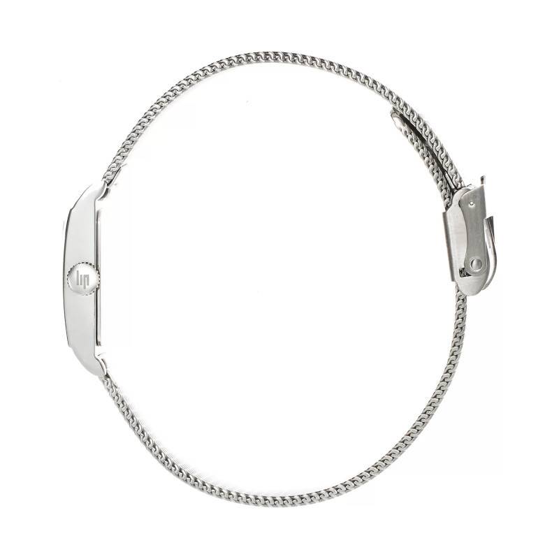 On remarquera la finesse des lignes du boitier argentée accompagné d'un bracelet en maille milanaise argenté et la forme de la célèbre place parisienne : La Place Vendôme, représentant le luxe à la française.