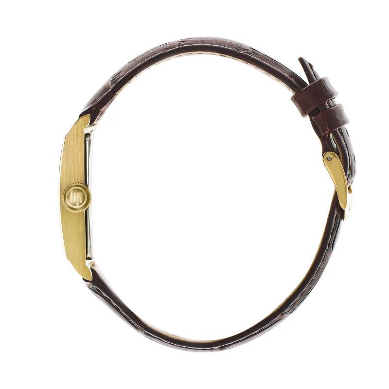 Cette montre est équipée d'un bracelet en cuir marron façon croco. D'une largeur de 18mm, il se ferme à l'aide d'une boucle ardillon en acier doré.