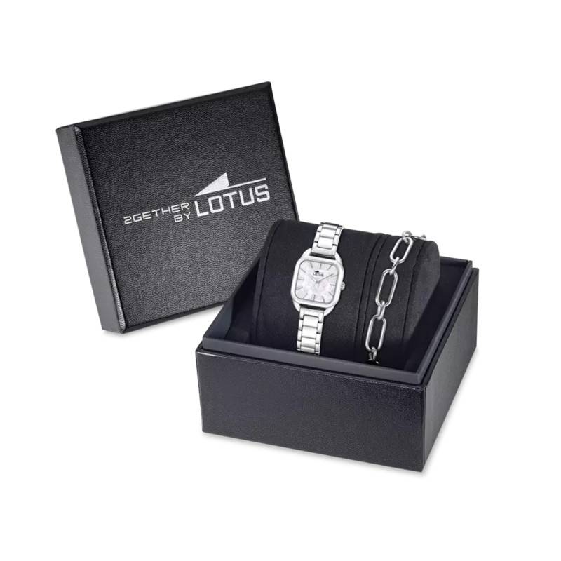 La montre Lotus modèle 2gether se distingue par son boîtier carré en acier inoxydable qui lui confère un look moderne et élégant. Avec un diamètre de 26,00 mm et une épaisseur de 6,95 mm, elle épouse parfaitement le poignet féminin tout en demeurant discrète et gracieuse. Le matériau en acier inoxydable garantit une excellente résistance à la corrosion et à l'usure quotidienne. Pesant 61 grammes, elle est légère et confortable à porter au quotidien. La montre bénéficie d'une fabrication en Asie, alliant expertise technique et savoir-faire traditionnel. Sa finition mate brossée offre une allure sobre et sophistiquée, tandis que son verre plat en minéral protège le cadran des rayures et des chocs occasionnels, assurant une durabilité exemplaire.