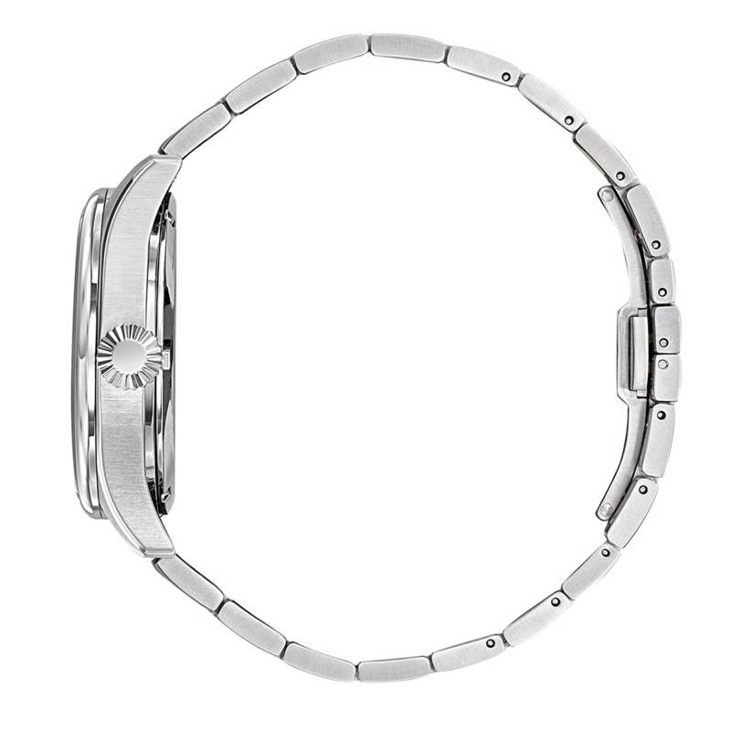 Le bracelet en acier inoxydable de couleur grise ajoute une touche intemporelle et s'harmonise parfaitement avec le boîtier. Ce matériau offre une excellente durabilité tout en maintenant une apparence raffinée. La boucle déployante permet une mise en place sûre et confortable au poignet, tandis que l'entrecorne de 22 mm assure un maintien parfait.