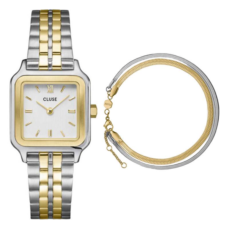 Découvrez le raffinement du coffret Gracieuse Petite CG11801 de Cluse, une ode à l'élégance contemporaine. Ce coffret contient une montre délicate au cadran épuré, accompagnée d'un bracelet double en maille serpentine mêlant acier et ou plaqué. L'alliance parfaite entre modernité et sophistication, pensée pour sublimer votre poignet avec subtilité. Un coffret précieux, à offrir ou à s'approprier.