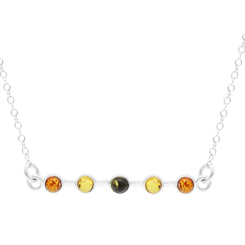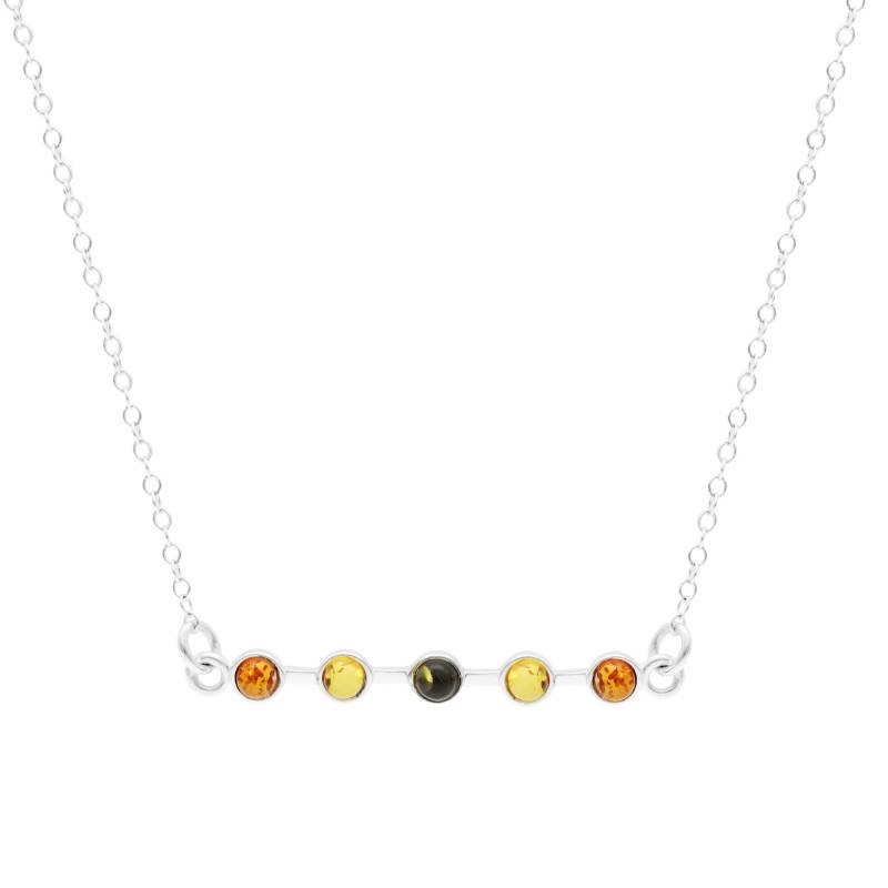 Le Collier Ambre Mixte & Argent 925 illustre à la perfection cet équilibre entre finesse et éclat. Réalisé en Argent massif 925/1000, il présente une finition polie et brillante qui capte la lumière avec subtilité. Cinq gemmes d'ambre multicolores ornent sa barrette centrale, de 37 mm de longueur et 1 mm d'épaisseur, pour un rendu harmonieux et lumineux. Sa chaîne de 44,00 cm, d'une épaisseur de 0,30 mm, épouse élégamment le cou, tandis que son fermoir à anneau à ressort garantit confort et sécurité. Léger et délicat, ce bijou affiche un poids de 1,80 g, parfait pour un port quotidien ou des occasions spéciales.