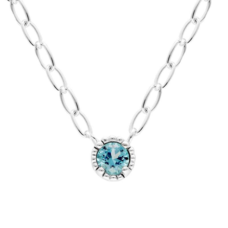 Le Collier en Argent 925 Rhodié & Oxyde de Zirconium Bleu illustre parfaitement cette harmonie entre modernité et tradition. Confectionné en Argent massif 925/1000, il est plaqué de rhodium pour une finition polie et brillante qui met en valeur la profondeur du zirconium bleu placé en son centre. D'une longueur de 45 cm et d'une épaisseur de 0,70 mm, ce collier léger de 1,70 g épouse le cou avec finesse. Son fermoir mousqueton assure un maintien sûr et discret, pour un port quotidien en toute élégance.