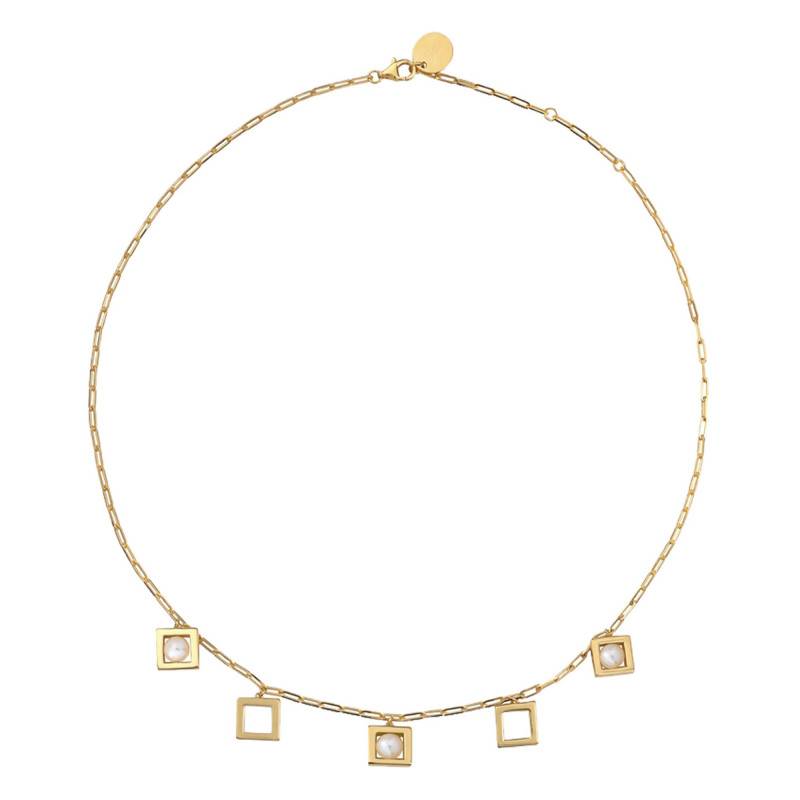 La combinaison des formes du collier ainsi que des perles d'eau douce procure à ce collier de la collection Balancelle un look luxueux et raffiné. Ce bijou en plaqué Or capturera la passion, l'enthousiasme et l'excitation de celle qui le portera. Les trois perles d'eau douce avec leur éclat satiné sont logées dans des carrés de couleur or jaune. Le collier mesure 45 cm. Il est réglable et est entièrement fait à la main sans nickel. C'est un accessoire qui va vous inspirer et recueillir des regards admiratifs. Avec ce dernier, vous pouvez facilement compléter votre look quotidien et vous pourrez le fermer à l'aide d'un fermoir mousqueton.