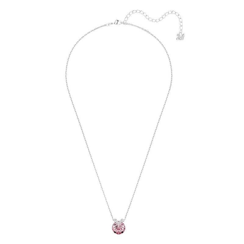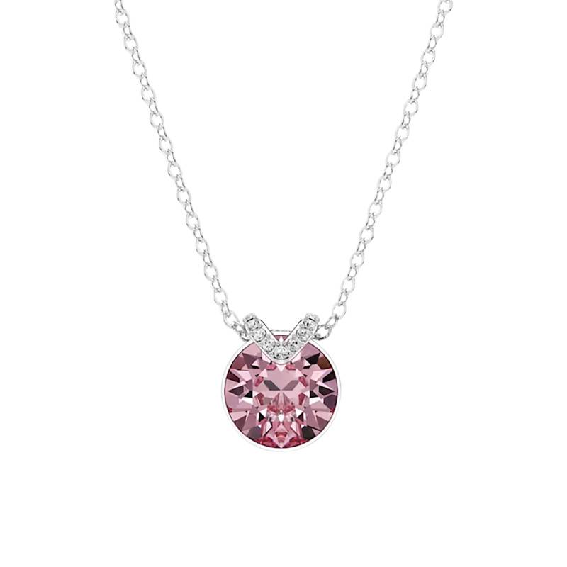 Misez sur l'élégance de ce collier V issu de la collection Bella. Il est façonné en métal rhodié et arbore une finition polie, assurant une résistance dans le temps et un éclat saisissant. Ce modèle se pare d'une délicate chaîne en maille forçat qui ornera votre cou avec splendeur. Il est muni d'un joli pendentif orné d'un cristal rose serti clos avec des cristaux blancs captivants sertis à griffes sur un motif en V. Ce ravissant collier assure un port agréable et possède un fermoir mousqueton facilitant sa manipulation. Sa chaînette d'extension lui permet d'ajuster sa longueur de 38 à 43 cm et est ornée d'un motif cygne avec des cristaux blancs symbolisant le logo de la marque. Pour ce qui est des dimensions de son pendentif, il fait 1,10 cm de largeur et 1,30 cm de hauteur.