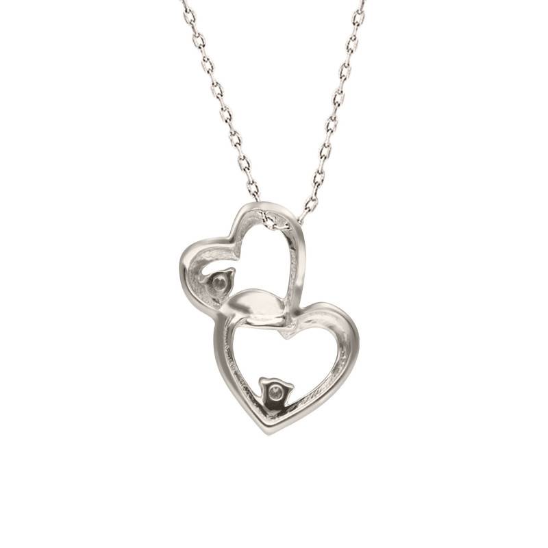 Ce charmant collier coeurs de 1,71 gramme en or blanc 375/1000 (9K) est le bijou parfait à offrir. Il se pare d'une chaîne en maille forçat de 45 cm de longueur et de 0,90 mm d'épaisseur et d'un magnifique pendentif. Ce dernier comprend deux sublimes cœurs enchevêtrés l'un à autre avec soin pour en faire une pièce de mode phare. Il a pour dimensions 7,50 mm de largeur, 12 mm de hauteur et 1,65 mm d'épaisseur. Il est d'autant plus plaisant grâce à ses motifs étoffés chacun d'un diamant de 0,02 carat de 1,90 mm de diamètre serti à griffes pour un effet scintillant sur votre cou. Vous pourrez fermer ce collier aisément grâce à son anneau à ressort.