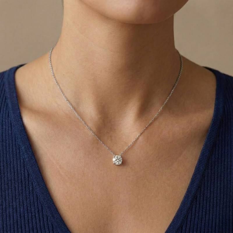Découvrez le Collier Diamant de Synthèse 4 Griffes 0,30 ct en or blanc 375/1000 (9 carats) ou 750/1000 (18 carats). Ce modèle raffiné est orné d'un diamant de synthèse cultivé en laboratoire, présentant une couleur F et une pureté VVS2, mis en valeur par un serti 4 griffes qui maximise son éclat. La chaîne, à la finition polie et brillante, est ajustable de 40 à 42 cm pour s'adapter parfaitement à votre cou. Le poids total est d'environ 1,50 g en 9K et 2,00 g en 18K. Le collier est équipé d'un fermoir mousqueton assurant un maintien sûr au quotidien.