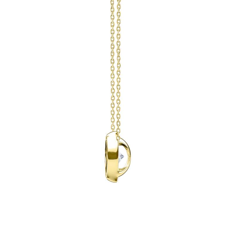 Découvrez ce Collier Diamant de Synthèse Clos 0,12 ct en Or Jaune 375 ou 750, où l'or jaune, enveloppe délicatement un diamant de synthèse cultivé en laboratoire. Ce bijou, réservé à la femme moderne, est ajustable de 40,00 cm à 42,00 cm, et pèse 1,43 g en 9K et 2,00 g en 18K. La finesse du serti clos magnifie le diamant de 0,12 ct à la couleur F et à la pureté VVS2. Avec sa finition polie et brillante, chaque réflexion de lumière sur cette création inspire délicatesse et sophistication.