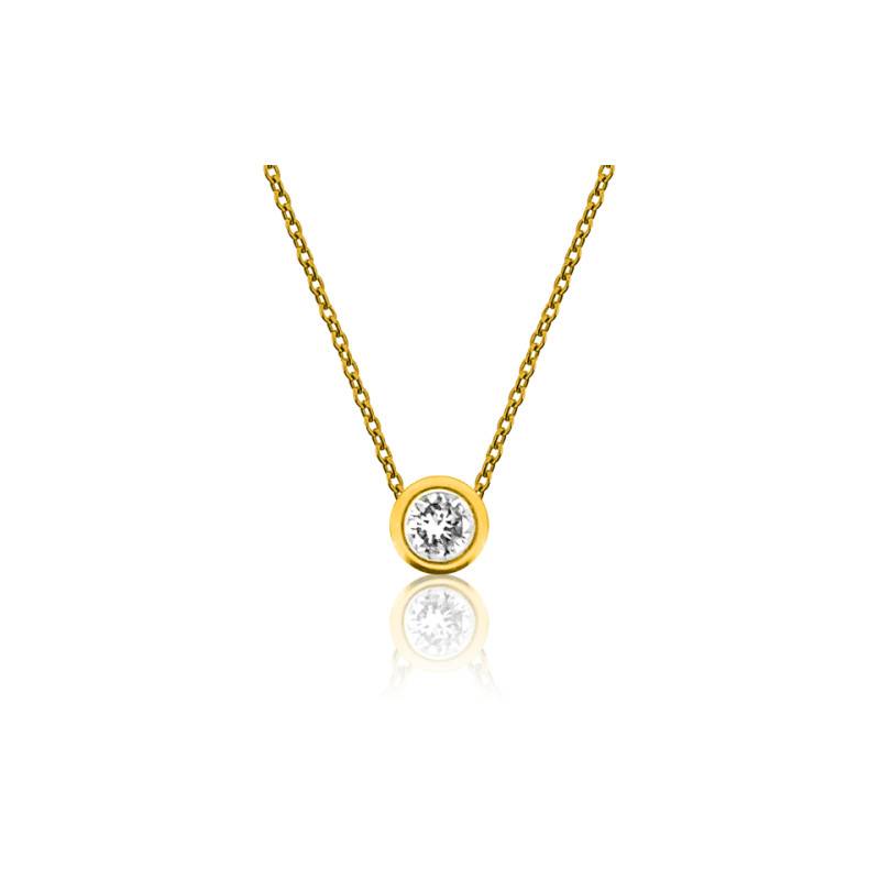 Découvrez ce sublime collier en or jaune 750/1000 (18K) composé d'un diamant de 0,15 carat à 1 carat de couleur G et de pureté VS1. Le diamant est monté en serti clos et la chaîne, d'un diamètre de 1 mm est soudé de part et d'autre du serti clos. Comptez un poids d'or moyen de 2,50 grammes.