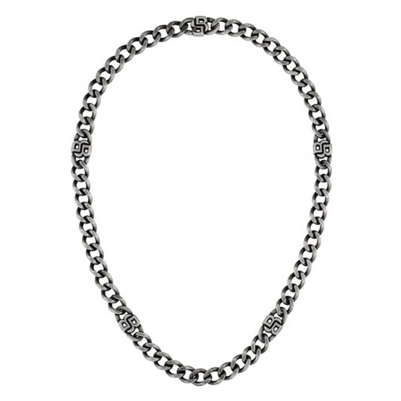 De la collection Double B Absolute, la marque présente ce merveilleux collier pour homme en acier inoxydable. Son aspect noirci est obtenu par une finition patinée qui permet une grande résistance aux aléas quotidiens. D'une longueur de 56 cm et d'un poids de 82 grammes, ce modèle arbore une chaîne en maille gourmette qui est appréciée pour son raffinement et sa robustesse. Il est orné par des motifs uniques incarnant le logo Double B de Boss et est muni d'un fermoir magnétique facile à utiliser qui vous permettra de le maintenir attaché à votre cou.