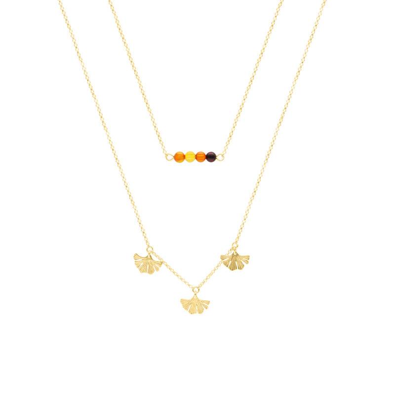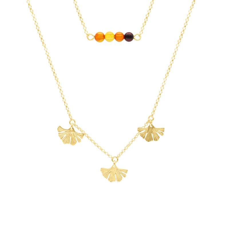 Ce Collier Double Rang Ambre & Argent 925 Doré jaune évoque la douceur de l'automne. Fabriqué en Argent massif 925/1000 et sublimé par un éclat doré. Les délicates feuilles, d'une épaisseur de 0,7 mm, dansent le long de sa longueur de 47 cm, tandis que le pendentif de perles d'ambre multicolore brille avec une longueur de 21 mm. L'anneau à ressort, discret et sûr, permet d'enfermer ce trésor avec assurance. Avec un poids total de 4,20 g, ce bijou à la finition polie et brillante est à la fois léger et imposant, une véritable ode à la nature éternelle.