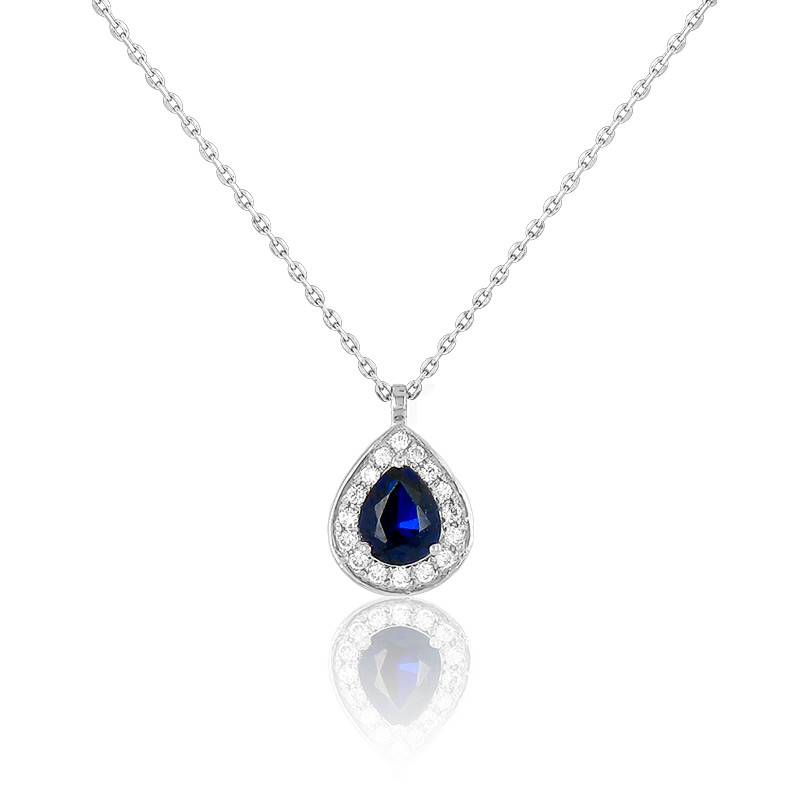 Celui-ci est agrémenté d'un pendentif goutte orné d'un saphir central taille poire de 0.40 carat serti 3 griffes. Le pendentif mesure 10,85 mm de hauteur et 7,25 mm de largeur.