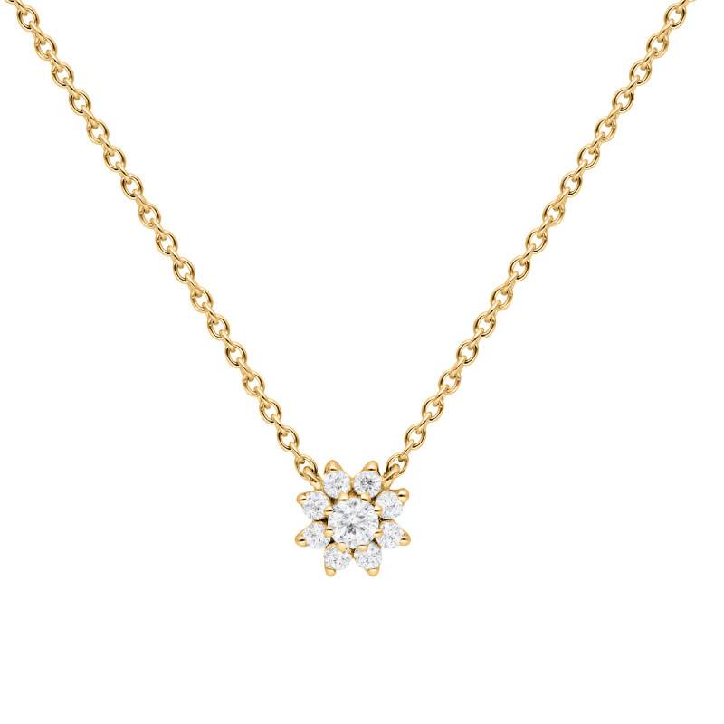 Le Collier Fleur en Diamants 0,12ct se démarque par sa ligne délicate et son design floral. Conçu en Or Jaune 375/1000 (9K) avec une finition polie et brillante, il reflète la lumière avec précision. Le pendentif est serti de 9 diamants blancs pour un total de 0,12 carat, apportant une touche lumineuse au bijou. Le fermoir mousqueton assure une fermeture fiable et confortable. D'une longueur de 40 cm à 42 cm, ce collier possède une épaisseur de 0,40 mm, un diamètre de 4 mm pour le motif et un poids de 1,36 g. Garantie 2 ans.