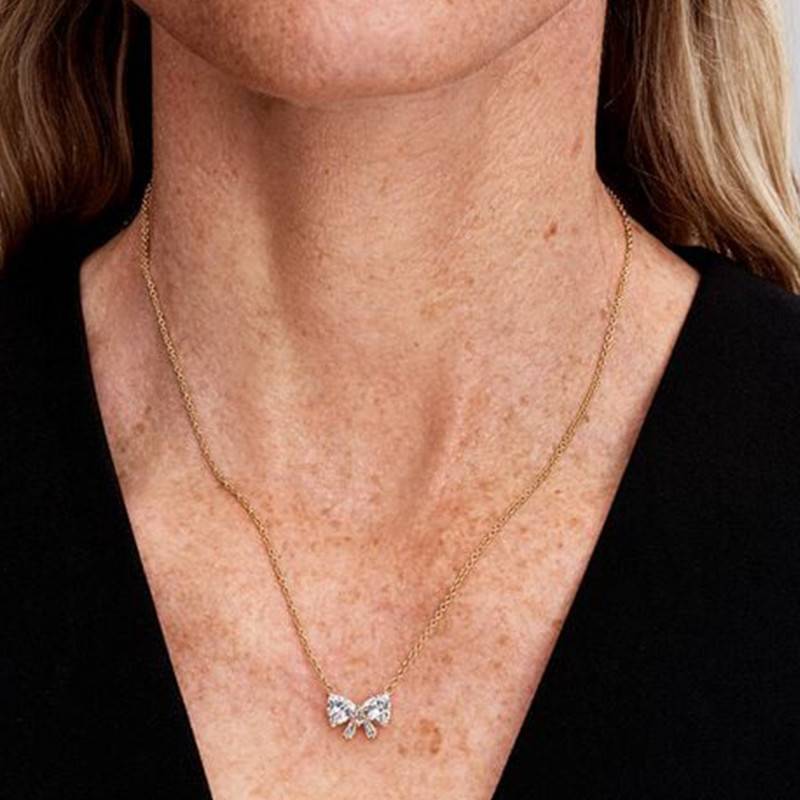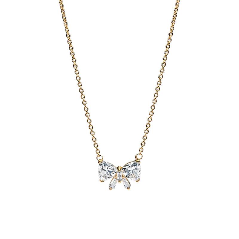 Le collier noeud scintillant, en métal doré à l'or 585/1000 (14K), arbore un pendentif raffiné en forme de noeud, symbole d'attachement et d'unité. Les détails scintillants, obtenus grâce à des pavés d'oxydes de zirconium cubiques, illuminent le design et reflètent la lumière à chaque mouvement. Ce bijou, avec ses dimensions de 9,7 mm de hauteur, 13,2 mm de largeur, 5,3 mm de profondeur et une chaîne ajustable de 45 cm, s'accorde parfaitement à vos tenues, qu'elles soient élégantes ou décontractées.