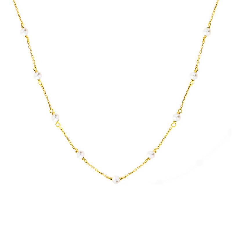 Le collier est en Or jaune 375/1000 (9K), tout le long de la chaîne sont disposées 9 perles d'or d'un diamètre compris entre 3mm et 3,5mm. Celui-ci est d'une longueur de 43 cm et son poids d'Or moyen est de 1.60 g.