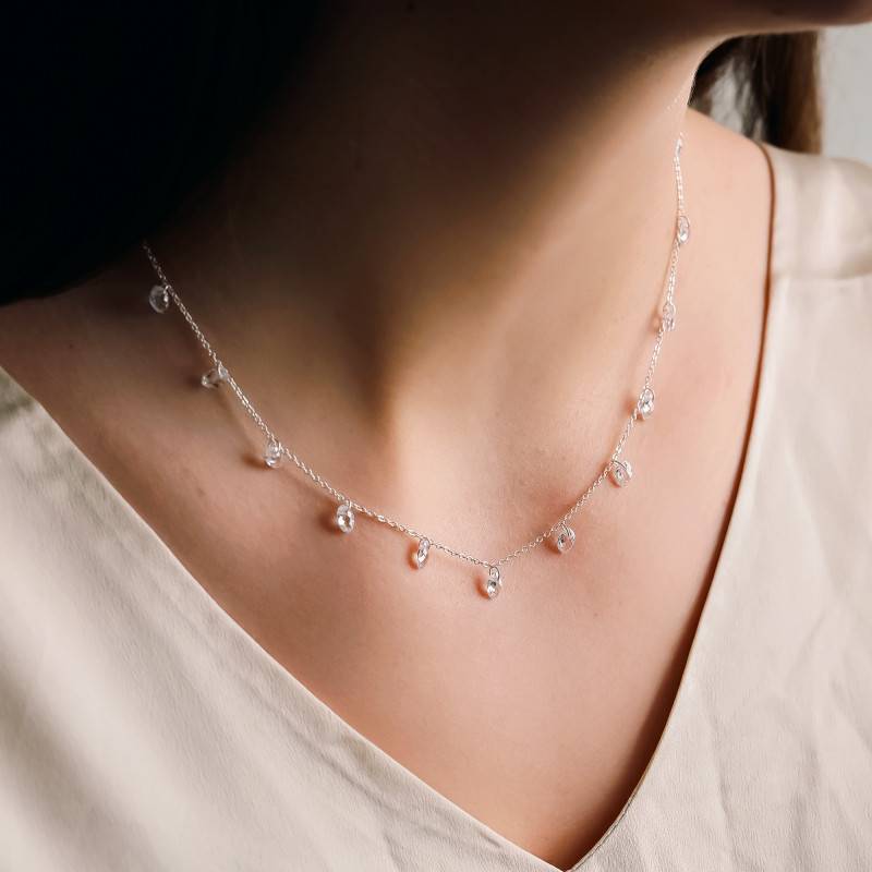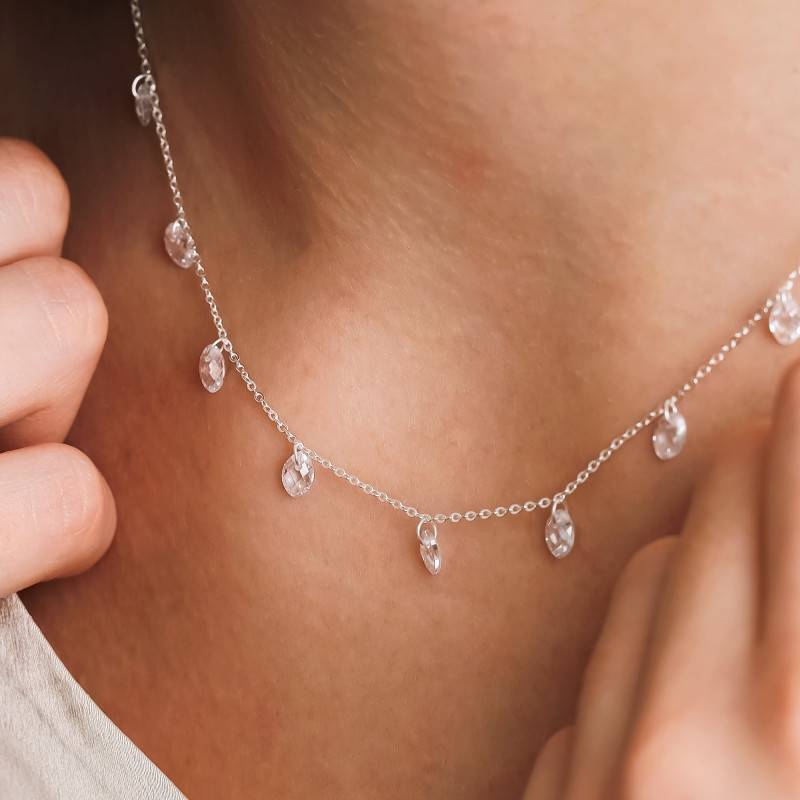 Il se ferme à l'aide d'un fermoir mousqueton. Vous allez adorer voir ses belles pierres en forme de navette de 10 mm de longueur et 8 mm de largeur, se poser délicatement et illuminer votre cou. Séduisant, ce collier vous vaudra d'affirmer votre bon goût et votre sens du raffinement.