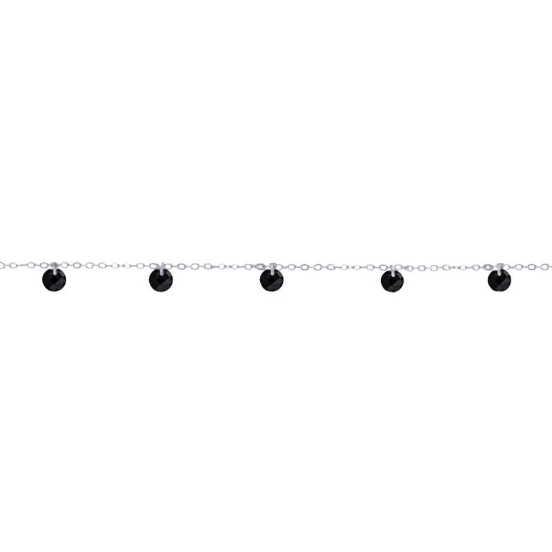 Ce collier, que nous vous présentons sur notre site, dont la chaîne de type forçat, est réalisée en Argent 925 millièmes. Celui-ci dispose d'une longueur de 40 cm avec une extension de 5 cm, qui vous permettra de l'allonger comme vous le souhaitez. Des pierres noires et de forme ronde, apportent de l'élégance et de la finesse à ce collier qui ne pèse que 3,61 grammes et qui ne dérangera pas votre cou et le mettra en valeur.
