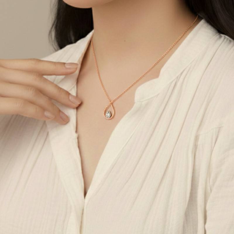 Tombez sous le charme de la collection Palline, pétillante et créative elle associe les perles d'or au diamant pour mieux le mettre en valeur. Déclinée sous toutes ses formes, chaque pièce est une empreinte de l'art joaillier grâce aux perles d'or soigneusement façonnées à la main. L'or rose 750/1000 (18K) et le diamant poire s'accordent dans ce collier épuré, raffiné et intemporel. Un mélange sophistiqué qui éblouira votre tenue à coup sûr.