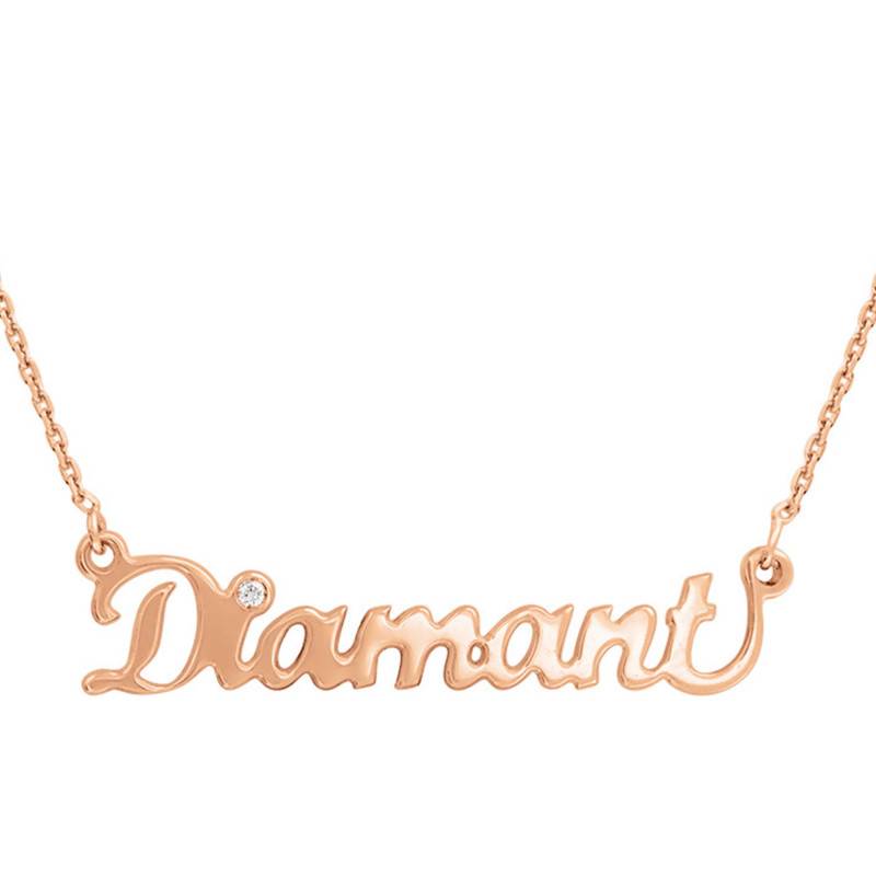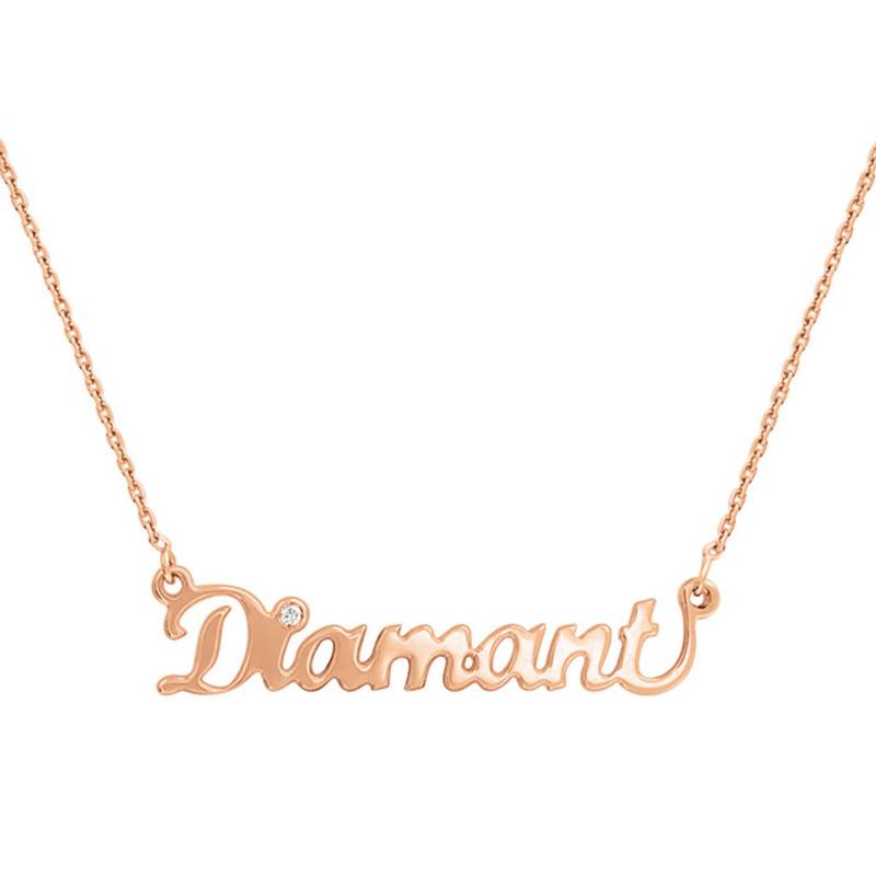 En partenariat avec les ateliers Ocarat, la Maison Rosatella vous propose d'embellir vos journées avec ce magnifique collier prénom en or rose 750/1000 (18K) et son diamant de 0,015 carat ! Ce bijou très esthétique saura être le cadeau idéal à offrir pour marquer un événement ! La plaque du prénom possède une épaisseur de 0,70 mm, ce qui permet de maintenir le scintillant diamant qui finalise avec charme ce collier personnalisé ! L'aspect poli brillant apportera luminosité à toutes vos tenues et attirera tous les regards ! La chaîne d'une longueur de 42 cm maintient la plaque grâce à des anneaux, ce qui vous garantira que le bijou reste bien en place. Ce modèle possède également deux anneaux de réglage qui vous permettront d'ajuster la longueur du collier à 38 cm ou 40 cm ! La chaîne possède une largeur de 0,90 mm. Le poids moyen pour un collier prénom 5 lettres varie entre 1,80 g et 2 grammes tandis qu'un prénom en 10 lettres aura un poids moyen entre 2 grammes et 2,60 grammes.