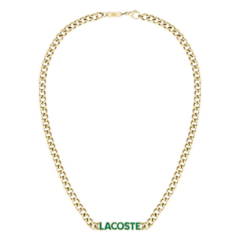 Captivant et élégant, ce nouveau collier de la gamme Script sera pour vous un excellent atout de mode. Pensé pour les hommes, il se pare d'une chaîne en maille gourmette qui renvoie un éclat subtil par sa finition polie. Ce bijou fait en acier inoxydable 316L est orné d'un motif vert portant le nom de la marque. De couleur dorée, il affiche une longueur de 56 cm et vous promet un port confortable chaque jour. Ce collier brillant pèse 43,90 grammes et se ferme au biais d'un fermoir mousqueton.