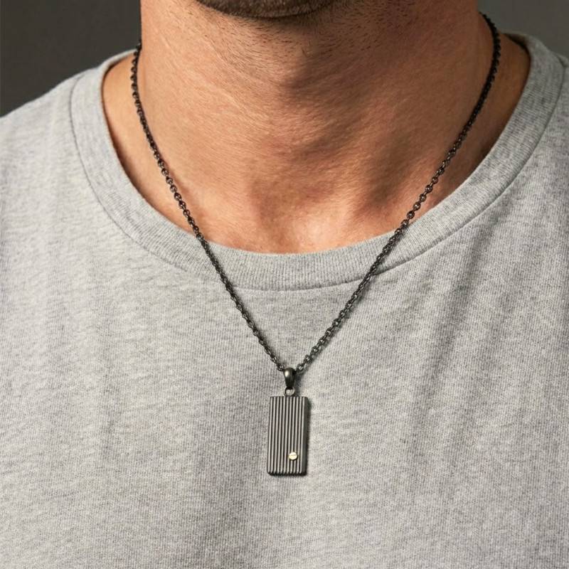 Découvrez le Collier Strié en Acier Inoxydable Noir, un bijou d'une longueur de 55 cm, forgé dans l'acier inoxydable. Sa finition striée est soulignée par une touche dorée délicate. Un compagnon idéal pour l'homme en quête d'un style authentique et raffiné. Ce collier pèse environ 12,40 g.